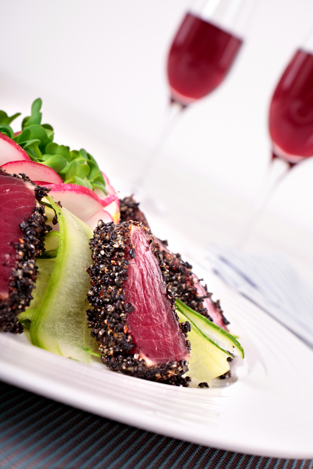 Carpaccio di barbabietola con crema di anacardi e germogli
